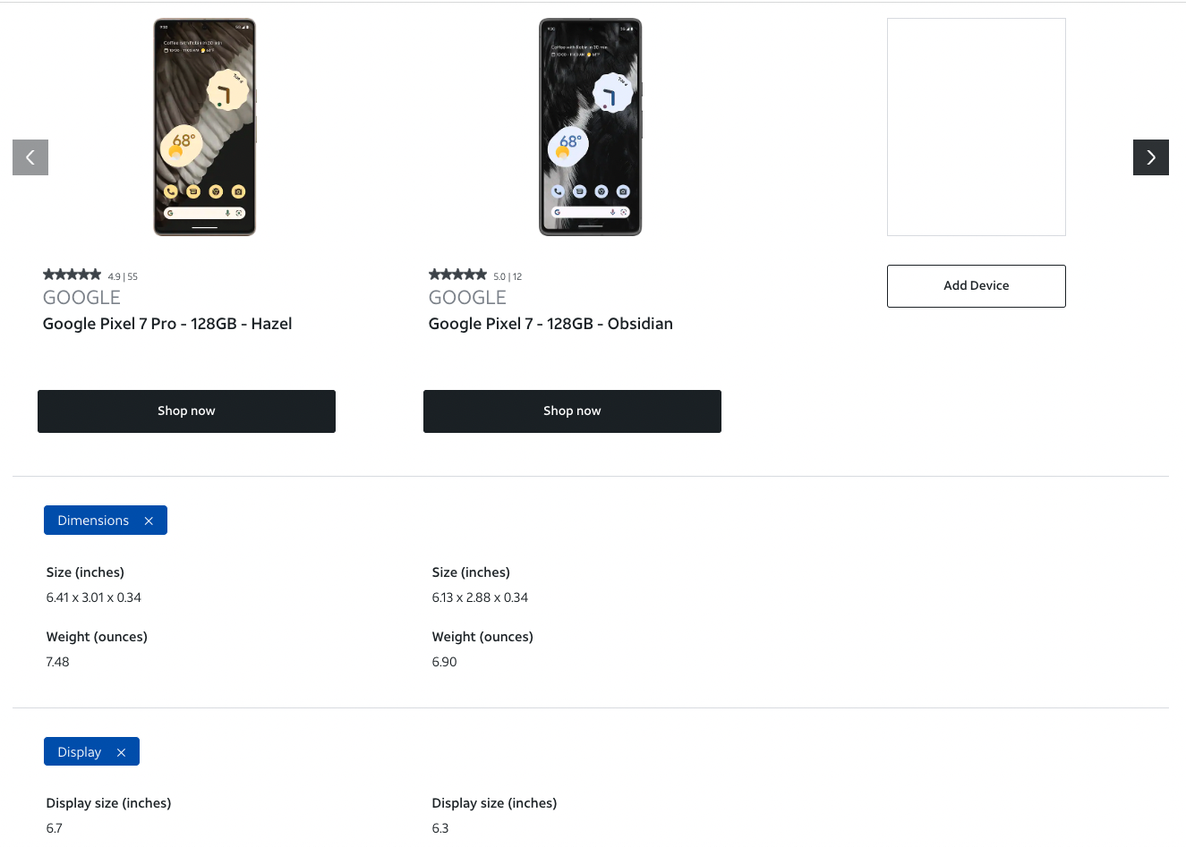 I also examined how other websites designed their product comparison tools for inspiration.